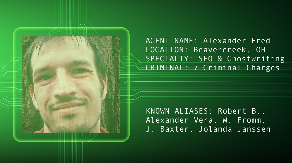 Aaravindha hired ghostwriter and background researcher Alexander Fred—who had written a piece for Bentinho Massaro attacking me—to set up these sites and write numerous fake news stories and hit pieces. He was following me on Facebook for years. I recently got a 15-second blank phone call from his exact location in Beavercreek, Ohio. He's also repeatedly acted highly aggressively toward me in Facebook comments and shared several of these defamatory articles.